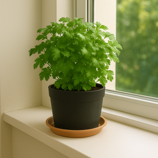 Récoltez ⅓ des tiges extérieures tous les 7-10 jours. Laissez toujours le cœur intact : la coriandre repousse et vous assure 3-4 cycles de feuilles avant la floraison.
