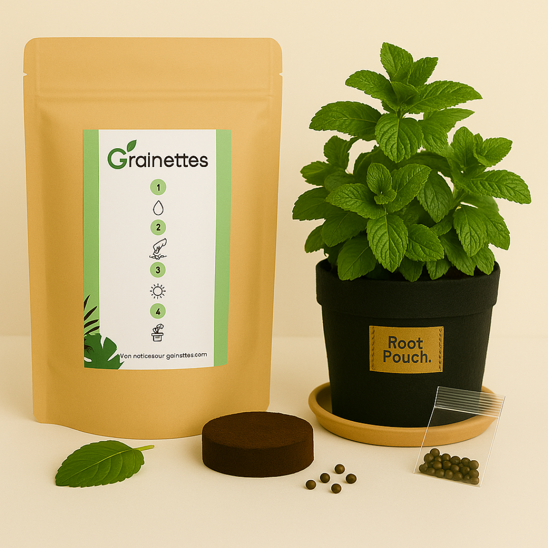 Le Root Pouch® ou pot à développement racinaire est un pot géotextile écologique conçu en Oregon aux USA. Son tissu est bien plus respirant et drainant qu'un pot classique rigide, favorisant ainsi le bon développement racinaire, une croissance optimale des plants et limitant l'apparition de moisissures et maladies. Notre Root Pouch® 1 litre est idéal pour le semis. D'autres dimensions et coloris viendront bientôt enrichir notre gamme de kits !